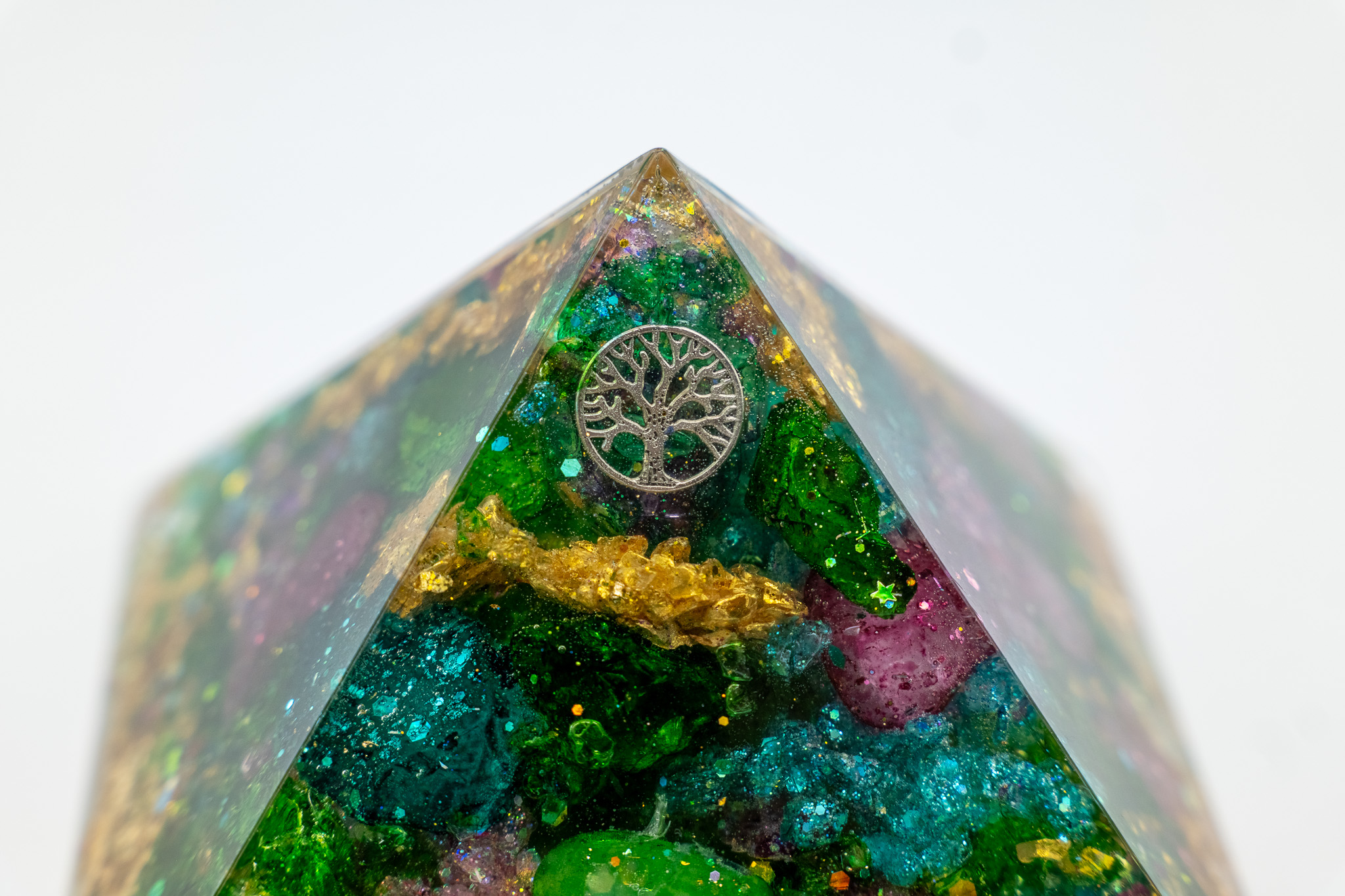 As with all orgonites from Oz, the Pranacrystal® harmonizes its environment with positive Chi (Prana, life energy). Due to its pyramid shape, a Pranacrystal® is particularly suitable for harmonizing living and work spaces. A Pranacrystal® is constructed according to sacred geometry. With a Pranacrystal®, you bring a mini Cheops pyramid into your home, whose harmonious field positively supports you and your surroundings. Its aesthetic appearance also makes it a visual highlight in any environment.