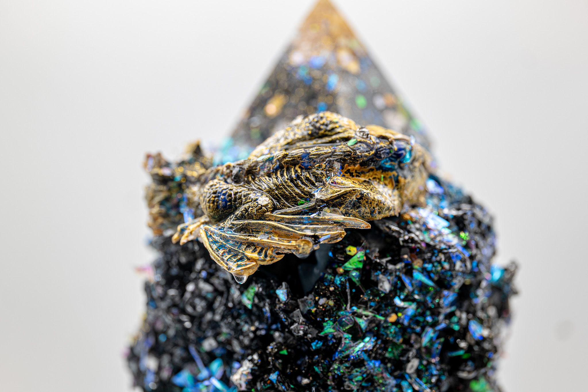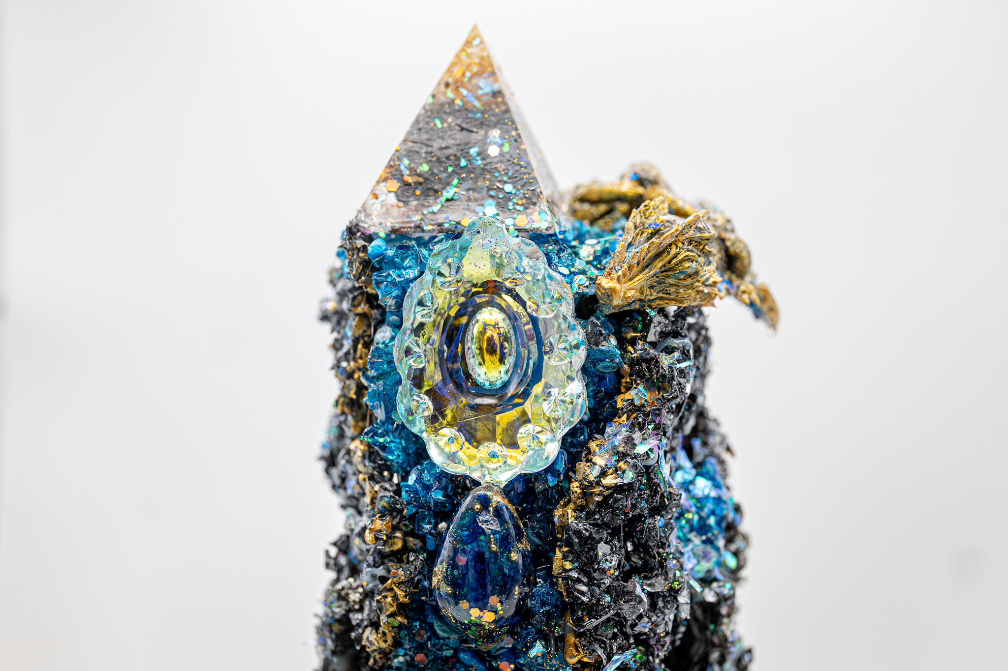 • Orgonit-Pyramide: Auf der Oberseite platziert, um die Energie zu bĂĽndeln.