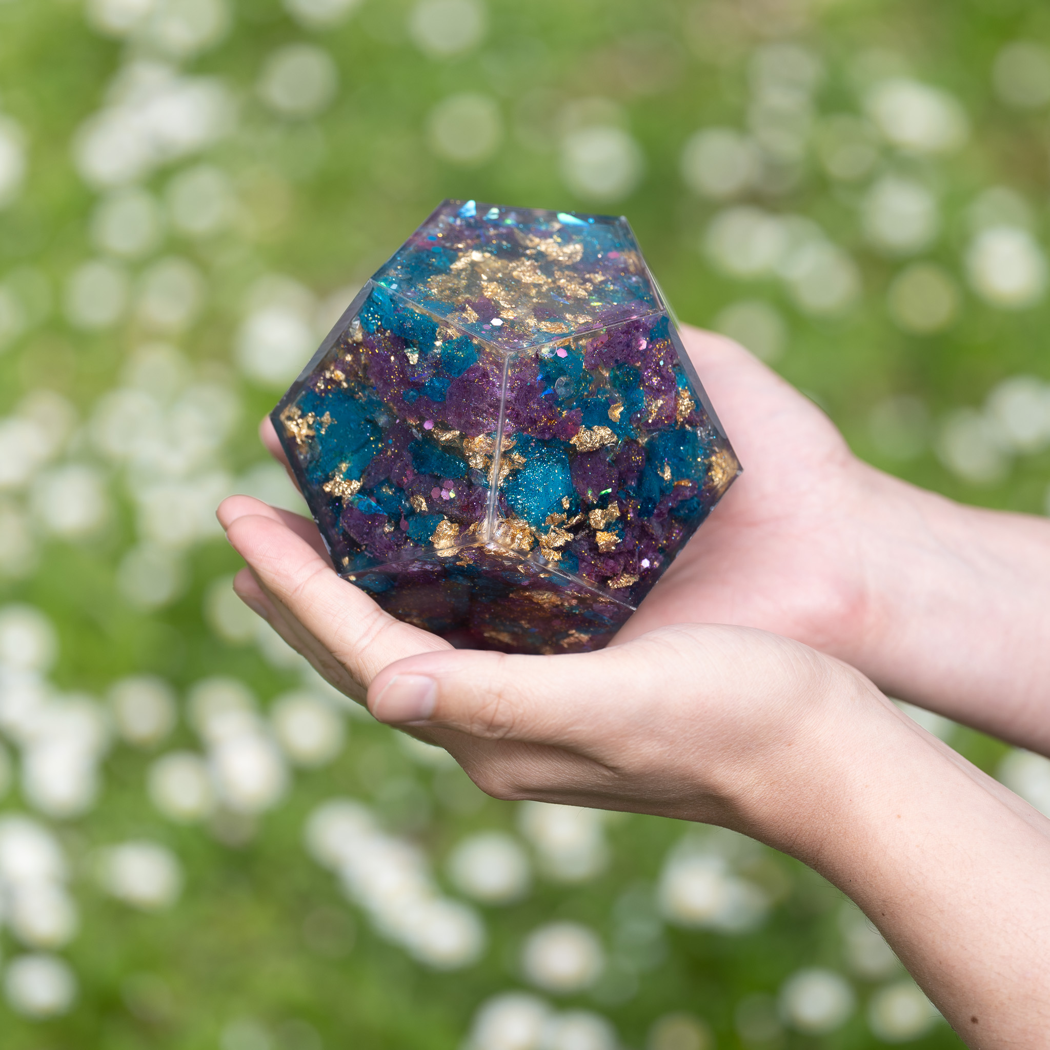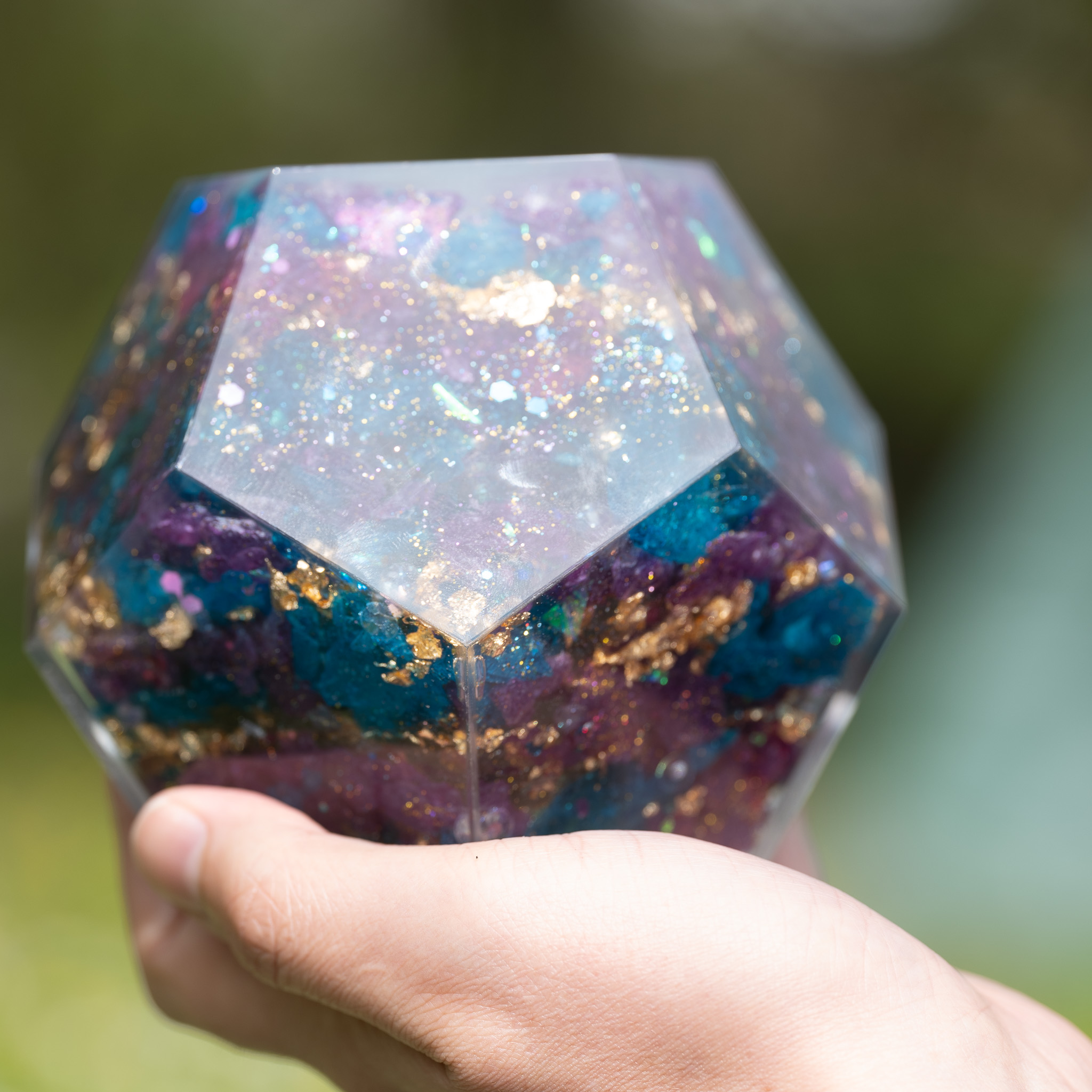 The dodecahedron connects you with your divine power, your inner master, and your creative source. It has a unifying, warm, heartfelt, and healing effect, supporting your connection to the creative force, the sacred fifth chamber of the heart, and the energy of the Christ grid. It guides you to your center and helps you embrace the power of the present moment, fostering gratitude, compassion, and a sense of unity with all that is.